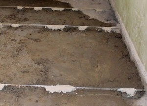 - На первом этапе определяют разность высот основания под будущую заливку.