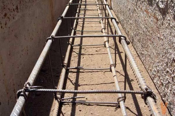 - Рабочая. При работе с фундаментом строители используют это изделие для противодействия растягиванию и давлению, которые возникают при нагрузках как извне, так и изнутри.