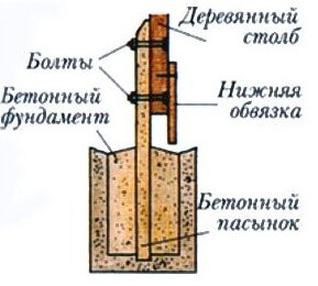 Монтаж деревянной опоры с помощью бетонной основы легко выполнить несколькими способами: