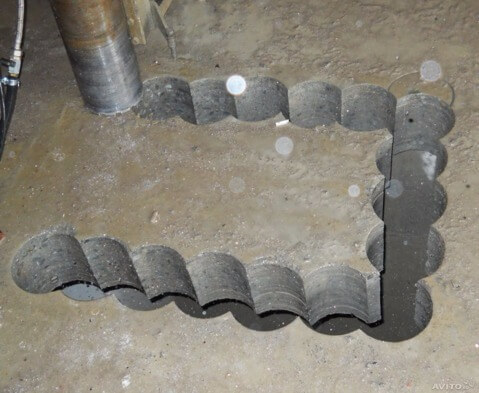 - Этот тип оборудования обладает особым трубчатым строением, что делает возможным сверление отверстия на любую глубину за одну операцию. Сначала стены либо трубы сверлят, а после можно вытащить один бетонный кусок.