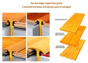 Сегодня предлагаются две модификации изделий: массивная паркетная доска и многослойная паркетная доска. Принципиальное отличие в том, что вторая благодаря способу производства существенно более устойчива к изменению температурно-влажностных условий эксплуатации, а первая может потенциально вынести больше циклов шлифования. Верхний слой обоих материалов — это ценные породы дерева (бук, граб, клен, дуб и пр.). Однако, возможный перечень пород древесины верхнего слоя (толщина 0,5 – 6 мм) многослойных изделий гораздо шире, включает особо ценные и экзотические виды дерева.