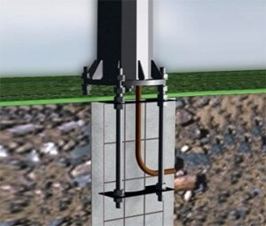 От предыдущего способа отличается себестоимостью и скоростью установки, технологической простотой. Вместо пластин используют анкер (механизм, который надежно закрепляет детали в монолитных блоках).